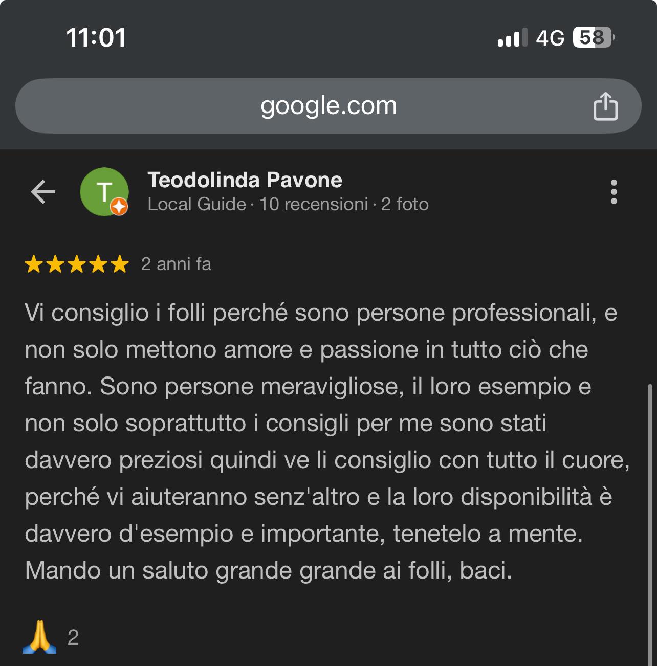 I Folli Scrivono sono una realtà straordinaria. In pochi mesi il mio profilo Instagram è cresciuto in modo concreto, sia in followers che in interazioni. Arcano e Flavio ti seguono passo passo, con competenza e umanità, fornendoti strumenti reali per una crescita professionale efficace. Sono ampiamente soddisfatta.